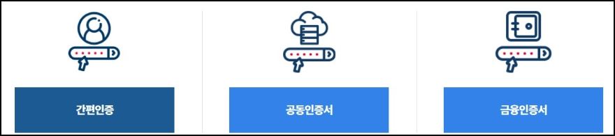 당연하게도 본인 인증을 가장 먼저 해야 합니다. 공동인증서, 간편인증, 금융인증서로 진행할 수 있습니다.