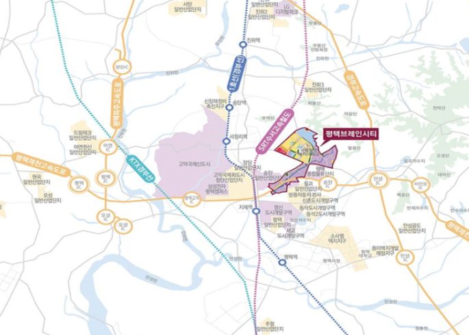 경기 최대 규모의 일반산업단지로 볼 수 있는 평택 브레인시티 2차 용지공급에 많은 분들이 관심을 가지고 있습니다. 교통이 특히 좋은데, 고속도로 5, 국도5, 5개 노선의 철도가 인접해 있어 편리하다고 볼 수 있습니다.