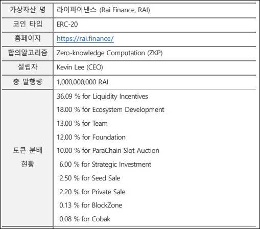라이파이낸스 RAI코인 상장 일정, 정보