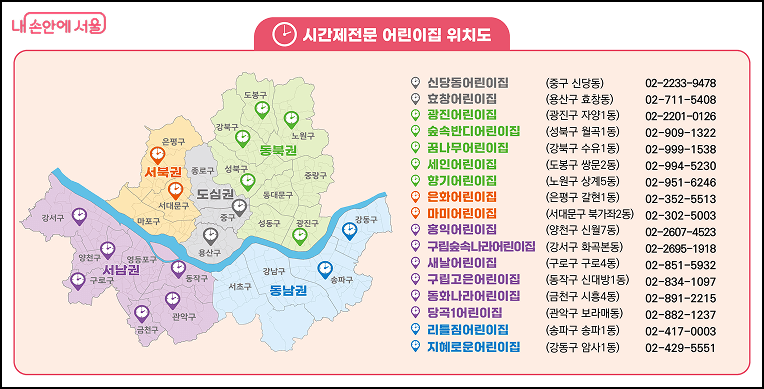 올해 기준으로 서울시에 17개소가 운영되는데, 서울 전체 자치구에서 확대 시행되기 때문에 활용도가 매우 높아졌습니다. 아이를 급하게 맡겨야 할 때 이용할 수 있기에 부득이한 사정이 생겼을 때 활용하면 되겠습니다.