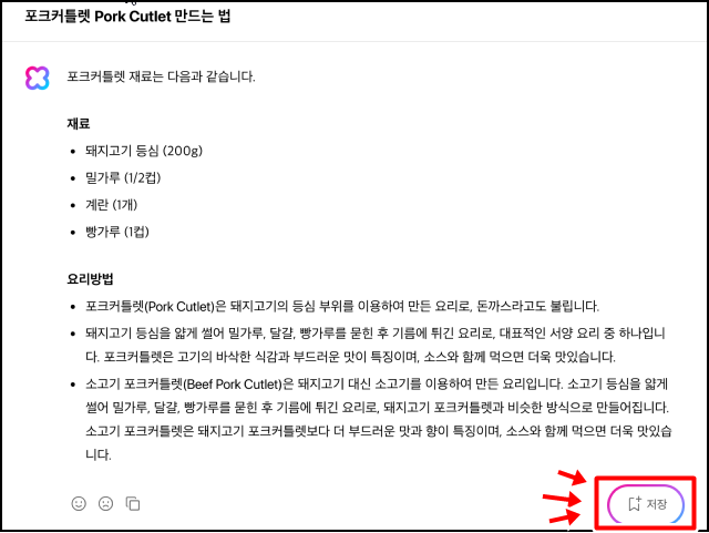 사용법은 매우 간단합니다. 대화 우측 하단의 '저장' 버튼을 누르면 디스커버리에 저장됩니다. 이건 대화 리스트와는 별개로 향후 삭제한다고 해도 서로 영향을 미치치 않아 안정성도 충분히 확보되어 있습니다.